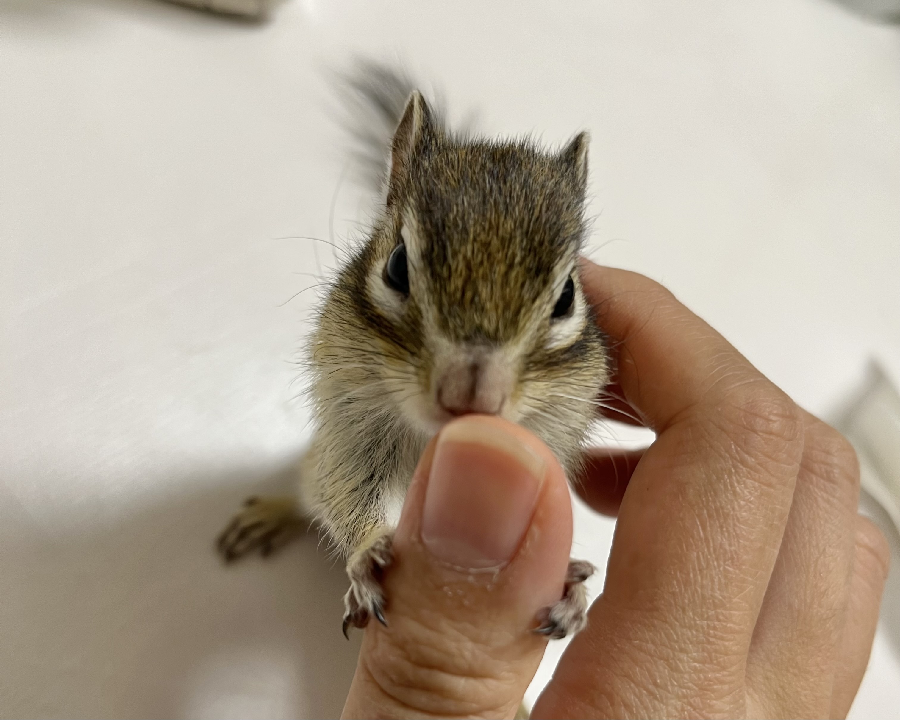手の上に乗せて、しばらく指を嗅いでくれたりこねさせてくれた〜💦